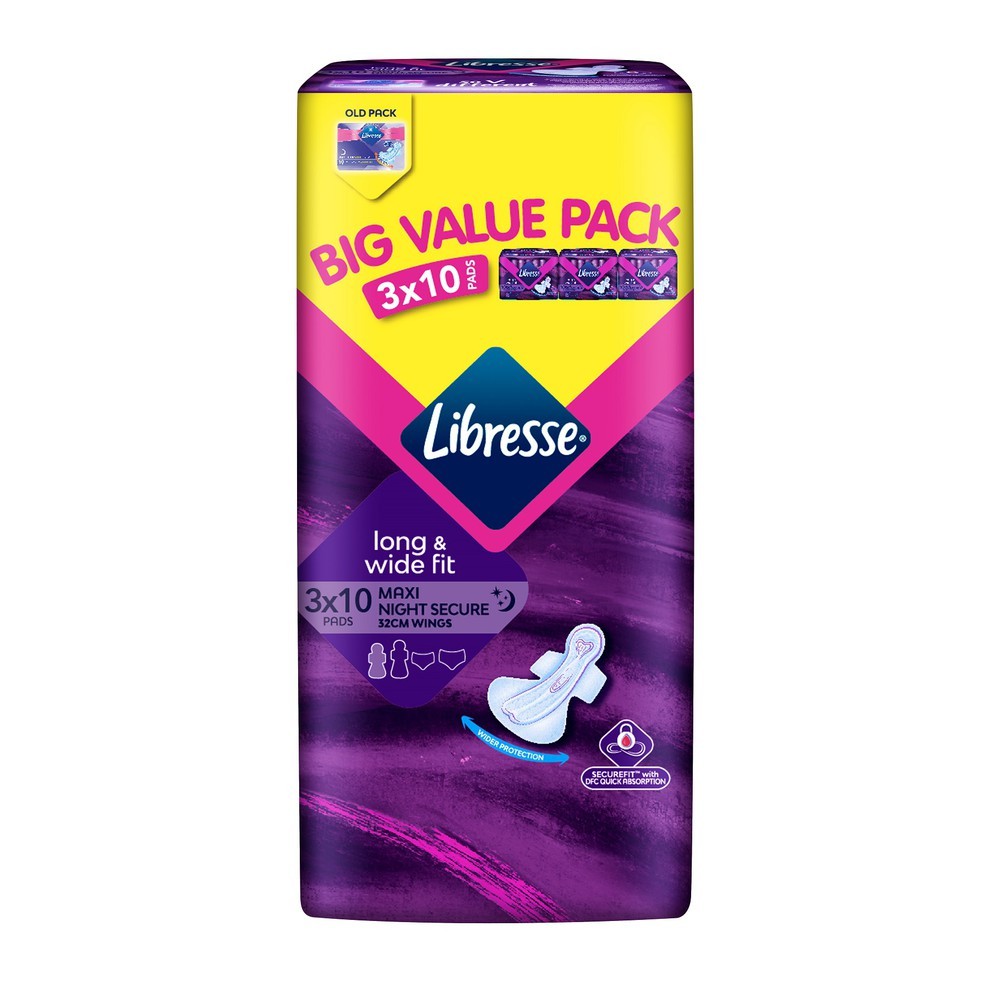 Libresse Maxi Wing : LIBRESSE, Maxi Night Secure 32cm 2 x 10's | Watsons Malaysia / Daarnaast heeft het maandverband vleugels om het op zijn plaats te houden.